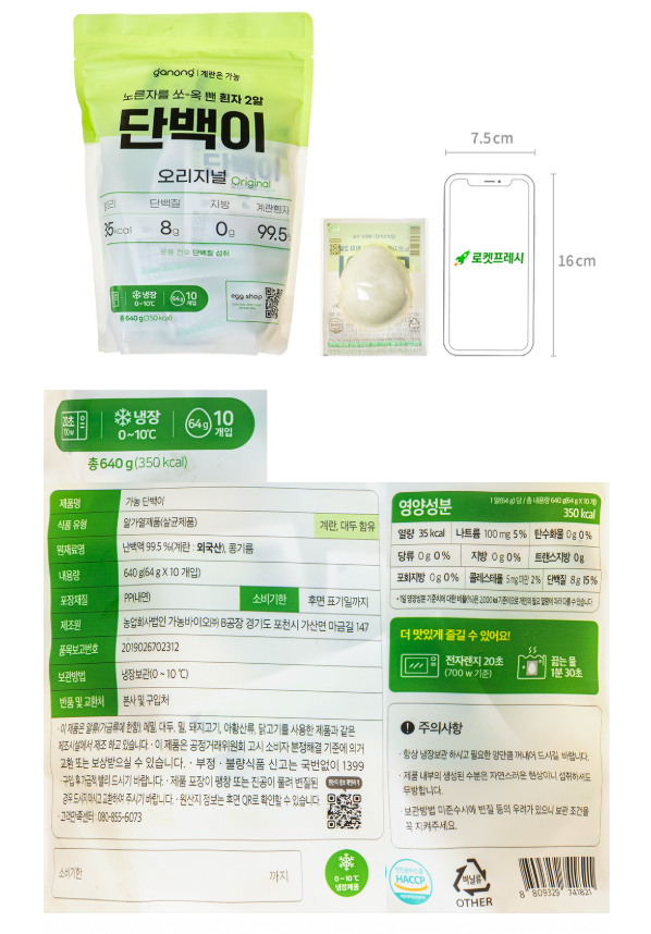 흰자만 거의 순수하게 담아 만든 고단백 제품이에요.